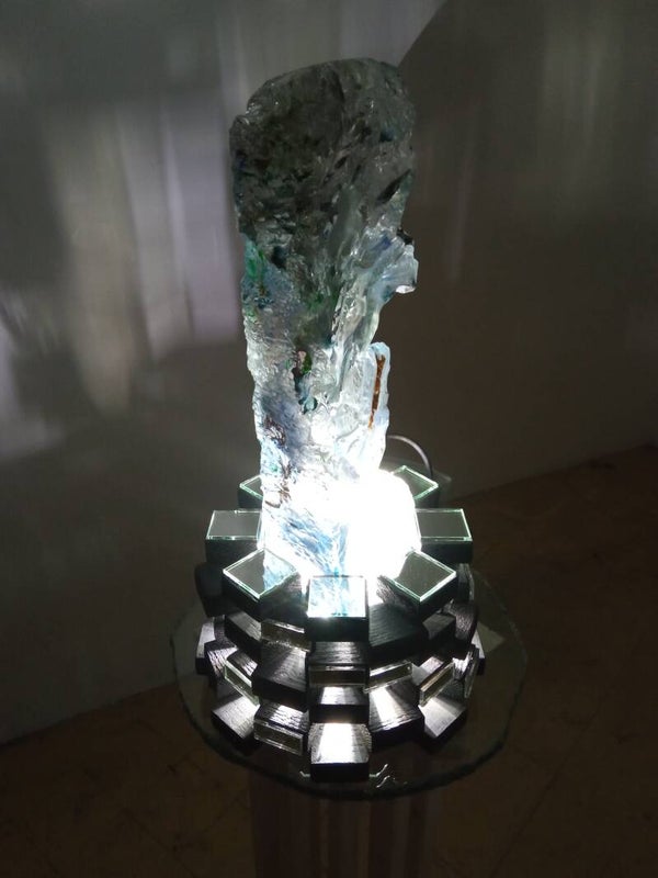 Materia: plexiglass su base in legno e vetro/specchio