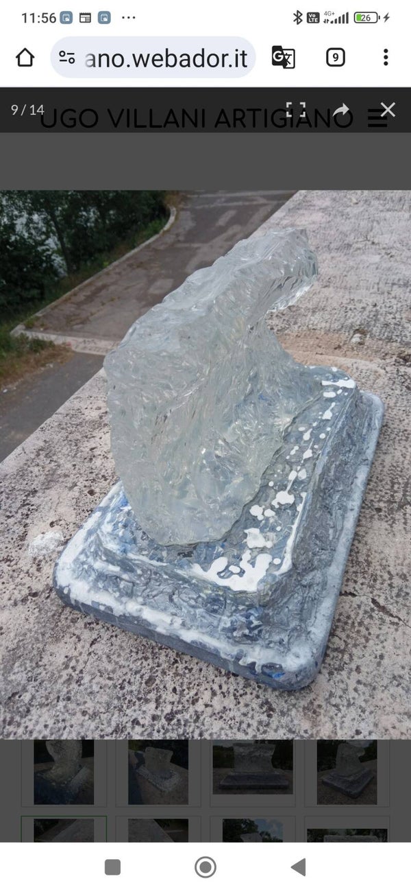 Materia: plexiglass, vetro, malta e resina su base/colonna in legno